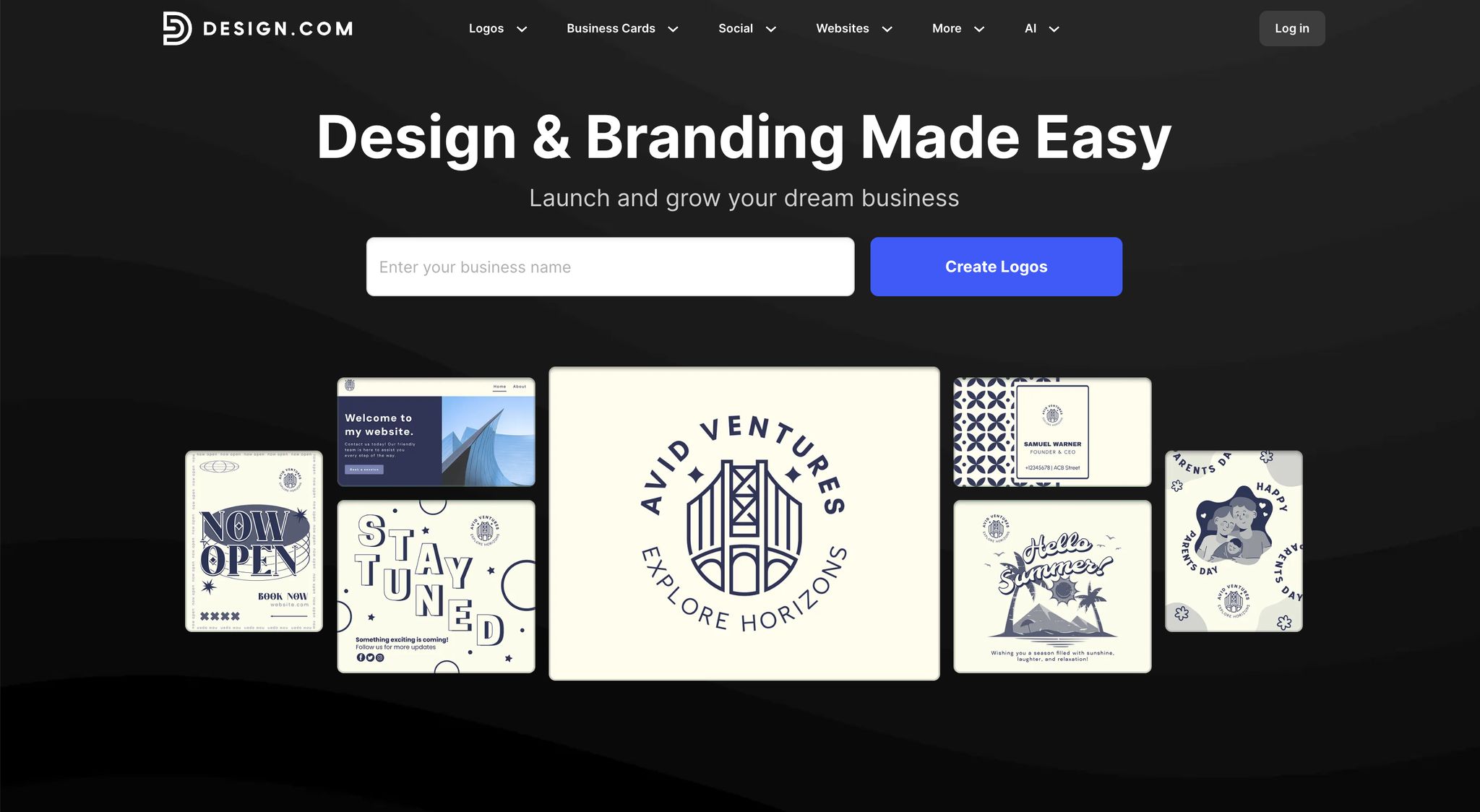 “Design.com’s platform is architected around a logo and brand. After creating a logo, Design.com makes it easy to design other elements—from websites to business cards—that incorporate the logo and perfectly match the brand. This approach differs from how most design platforms operate, saving entrepreneurs time while delivering a better design outcome.”